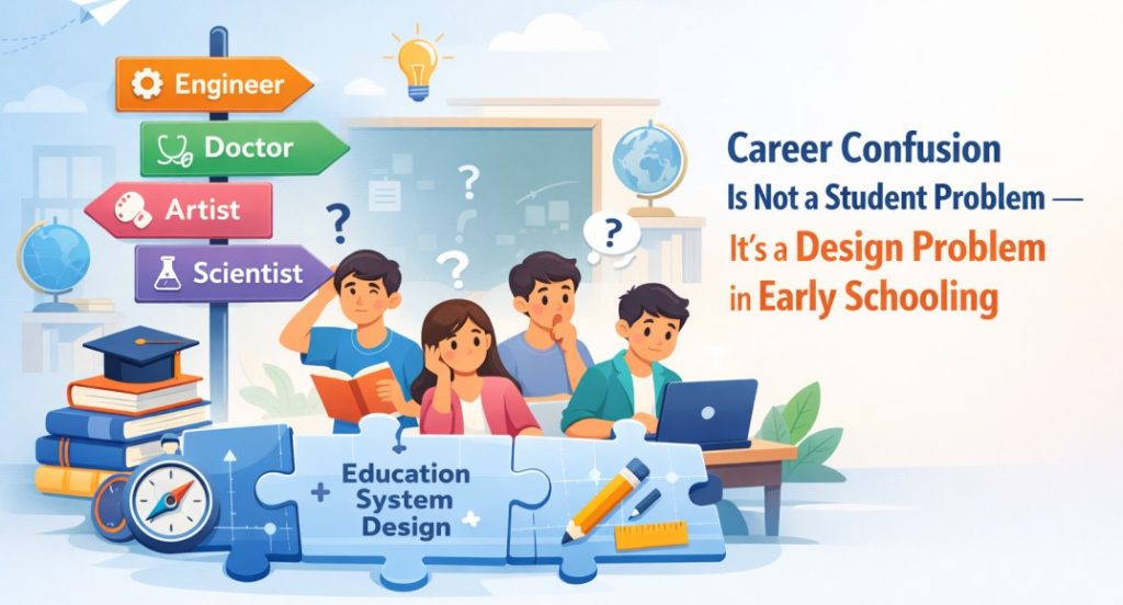 Many parents in India notice that their children reach Class Eight or Nine with little clarity about what they enjoy learning or what kind of work they might like in the future. This is often called career confusion. Students are blamed for being careless or distracted. Teachers feel frustrated that children do not show direction. Principals worry about results and reputation. But research and classroom experience suggest something deeper. Career confusion is not a personal failure. It is a design problem created in the early years of schooling.